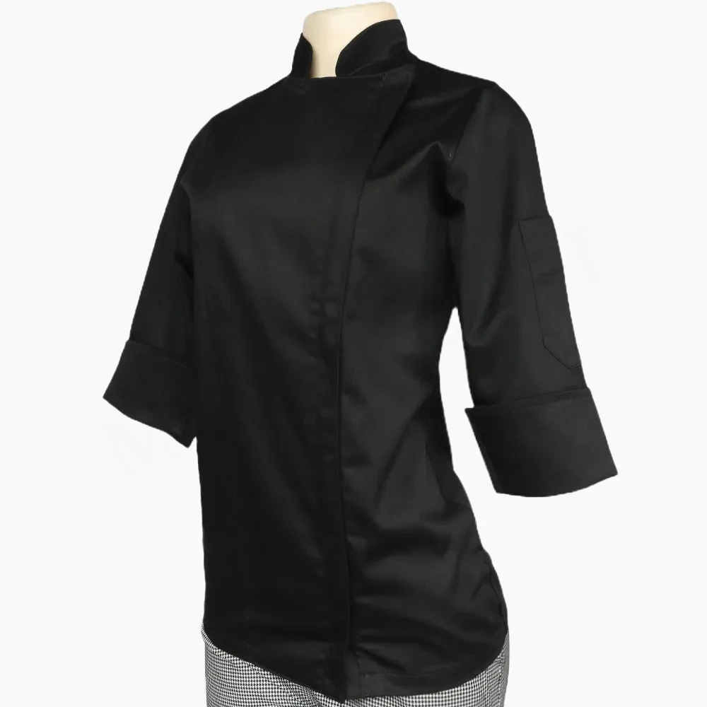 Chaqueta Chef Dama Negra Gabardina Cierre