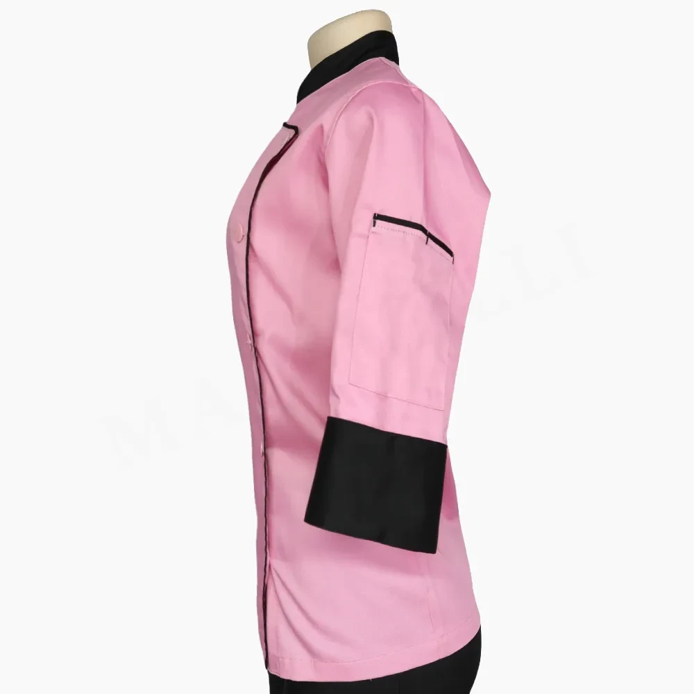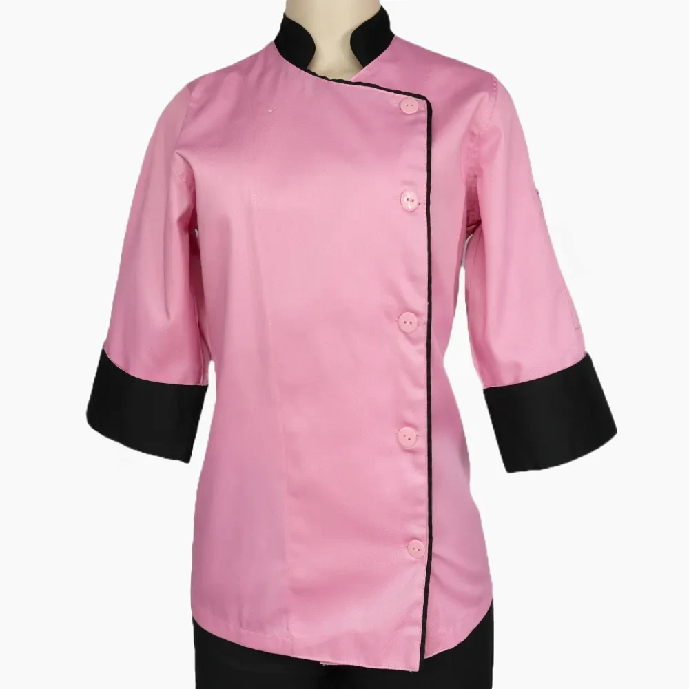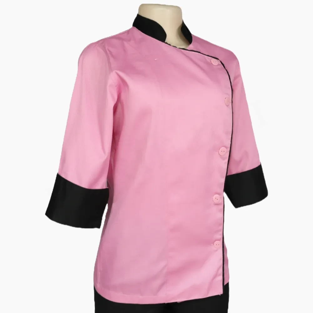Chaqueta Chef Dama Rosa y Negro Gabardina