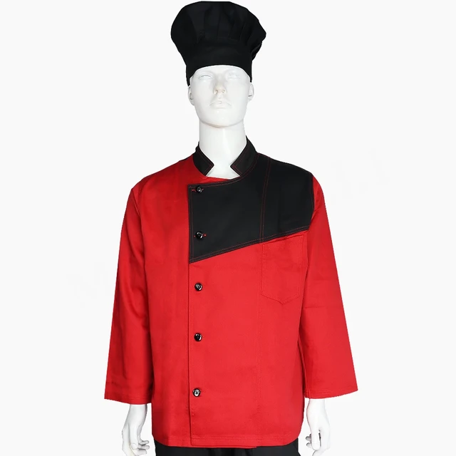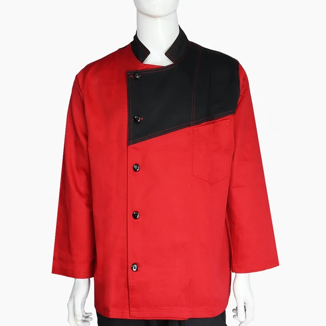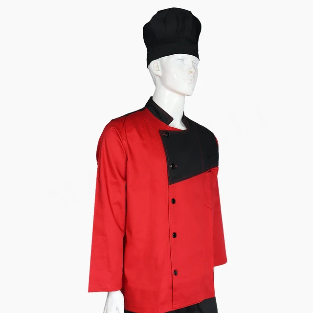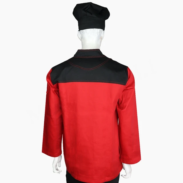 Chaqueta Chef Rojo con Negro Unisex con Botón