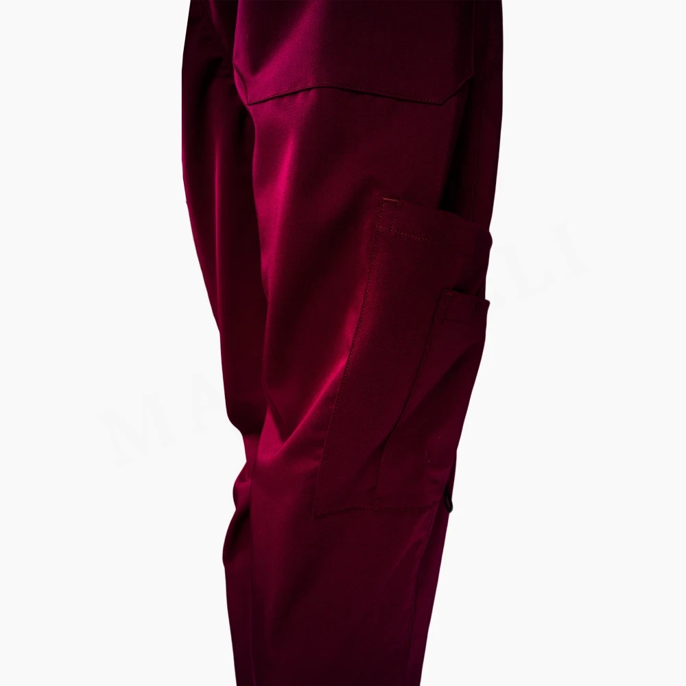 Pantalón clínico unisex en color burdeo, confeccionado con tela MedConfort, ideal para profesionales de la salud que buscan un uniforme cómodo y resistente. Se destaca por su propiedad antifluído, es un tejido resistente al uso y lavado activo, es flexible debido a la integración de fibras de Spandex. Gracias a su composición, el material es capaz de adaptarse al movimiento regular del usuario, brindando una sensación de libertad única debido a su ajuste y bajo peso. Adicionalmente a esto, posee un look muy elegante y de terminación suave, ideal para la confección de prendas que se encontraran en contacto directo con la piel.