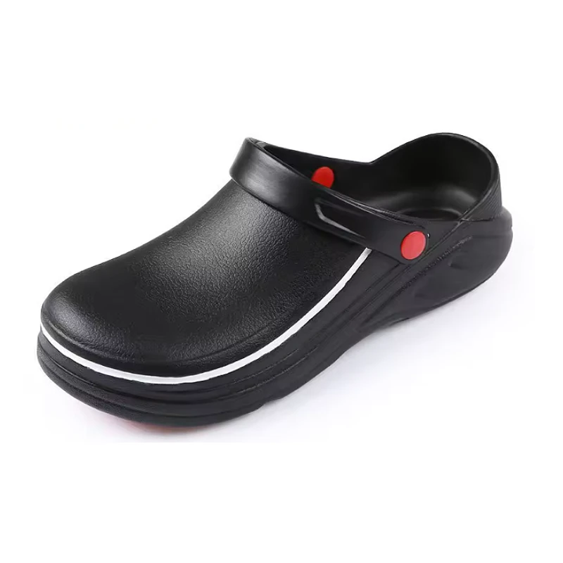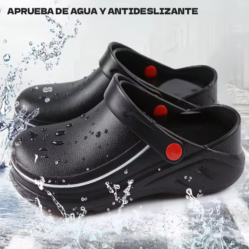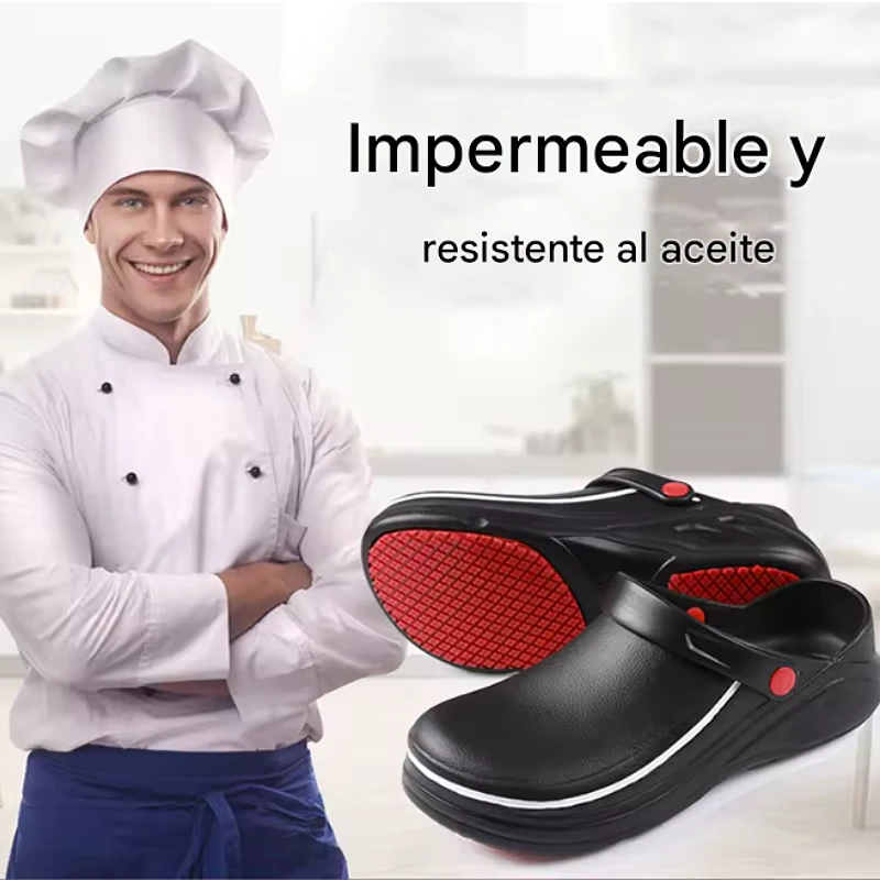 Zueco de Cocina Antideslizante Bicolor Negro/Rojo con Correa